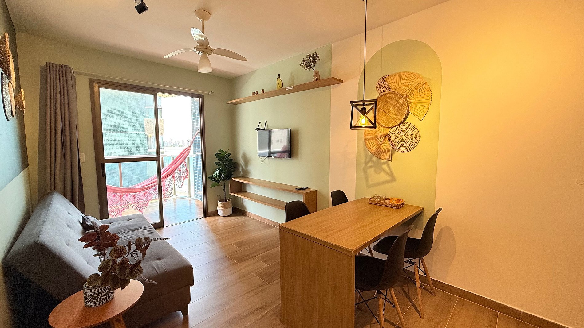 Side apartment, with sea view, 2 bedrooms, 2 bathroom, maximum occupancy of 6 people. The property is equipped for preparation of quick meals, with induction stove, bed and bath according to the number of guests (inform if it is double or not for the correct storage of beds).