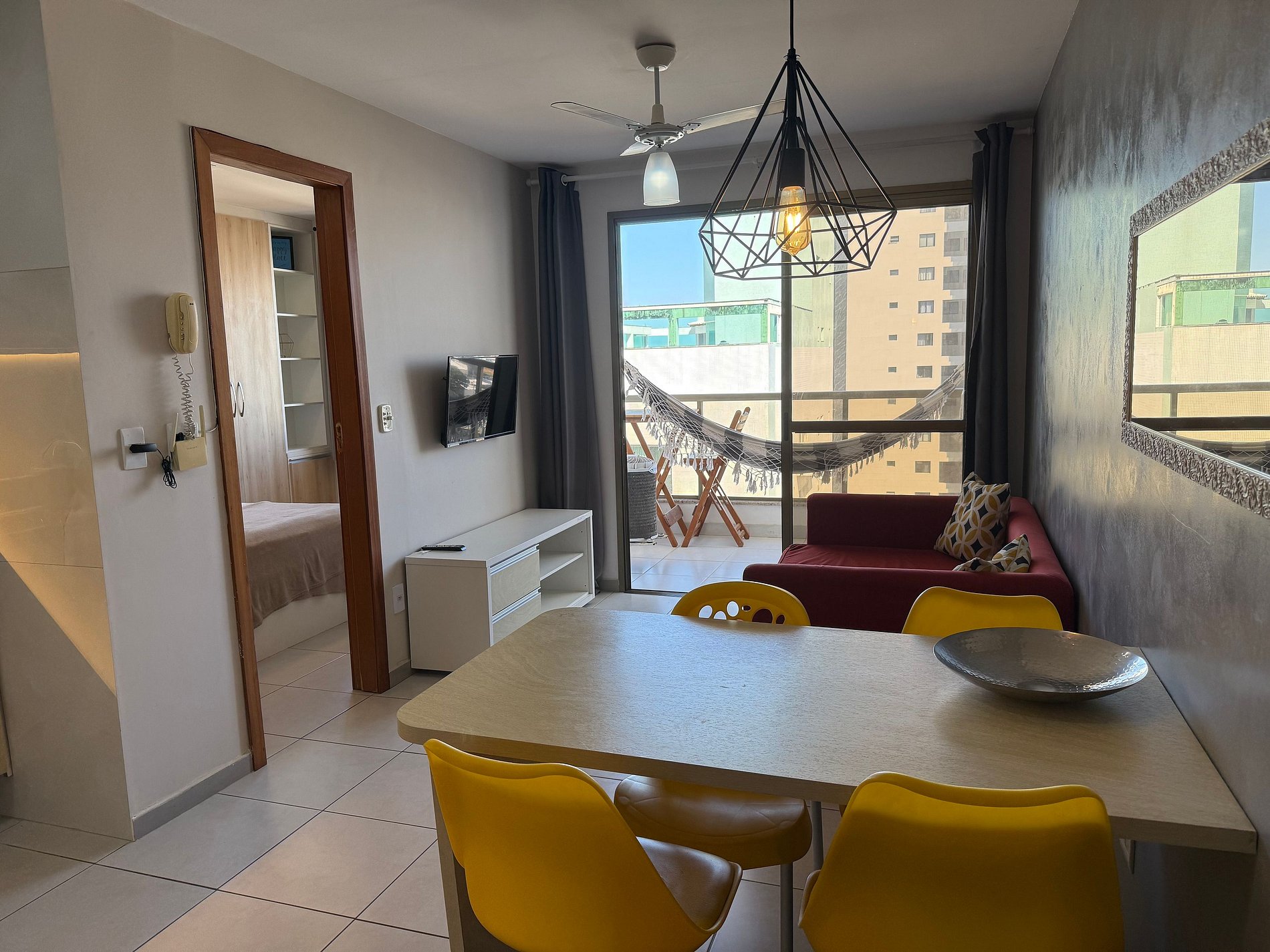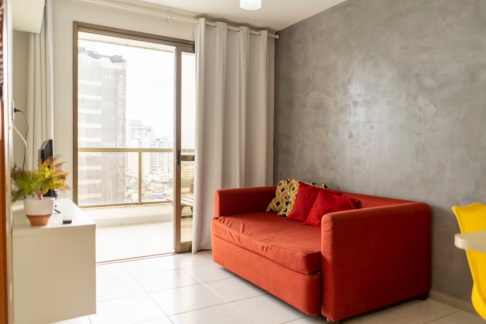 1 bedroom apartment, is ideal for couple, but it is possible to accommodate two more people on the sofa bed that is in the living room. We have kitchenware for preparing meals. We provide bed and bath linen according to the number of guests (inform if it is couple or not for the correct storage of beds). It is mandatory to send the full name and a document number of all guests to register in the building.
