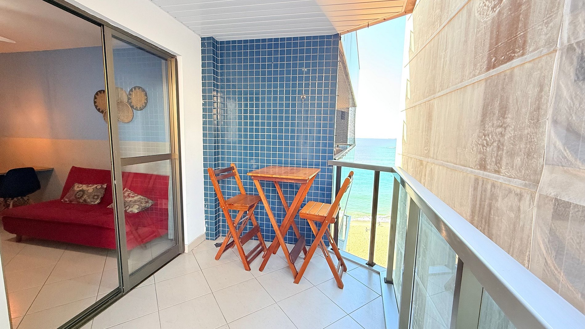 Aconchegante apartamento com 2 quartos com ar condicionado, sendo 1 suíte, além de sofá-cama na sala e pequena vista do mar. Acomoda até 6 pessoas com conforto. Cozinha equipada com fogão de indução e utensílios para preparo de refeições rápidas. Oferece roupas de cama e banho, fechadura eletrônica, Wi-Fi, e está em prédio frente mar, com piscina, lavanderia paga com agendamento e portaria 24h. Ideal para quem busca praticidade, conforto e excelente localização.
