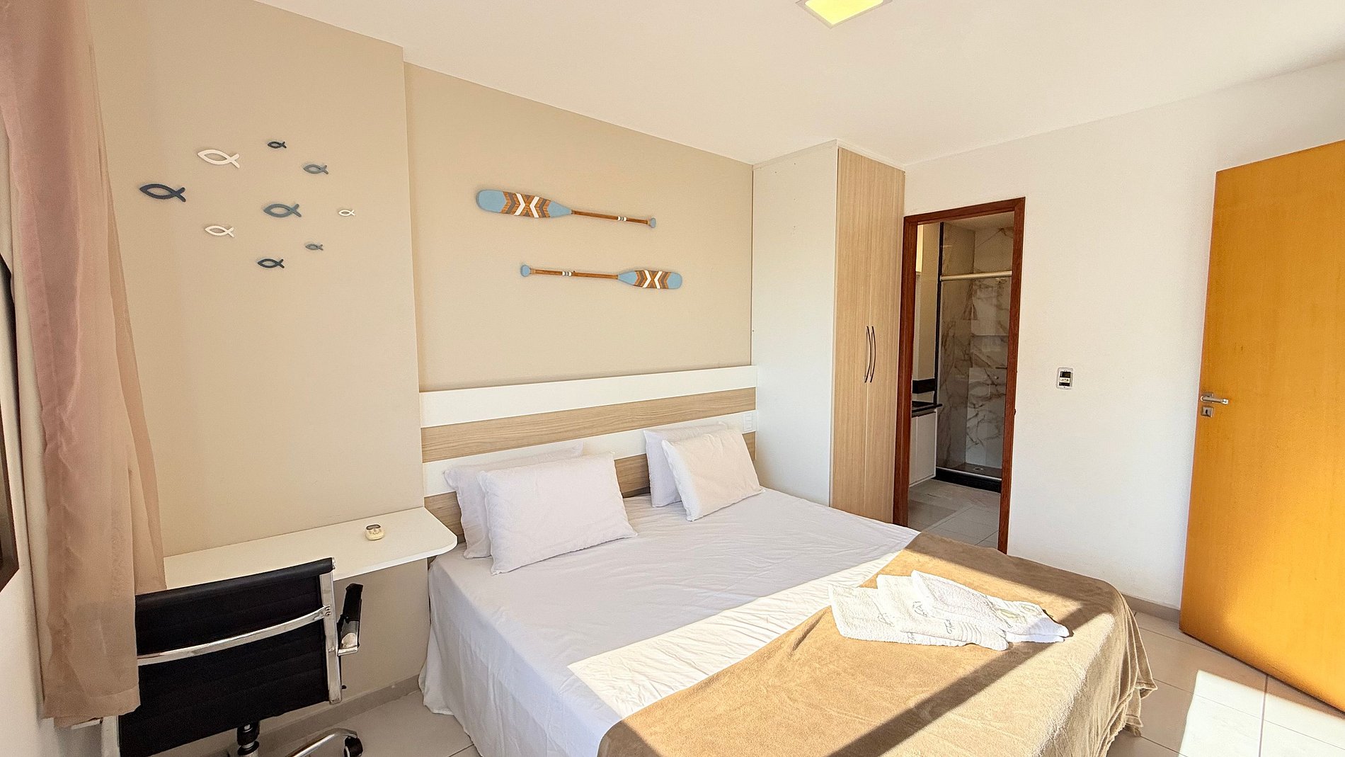 Aconchegante e completo, com 1 quarto suíte com ar-condicionado, sofá-cama na sala e com capacidade para até 4 pessoas.